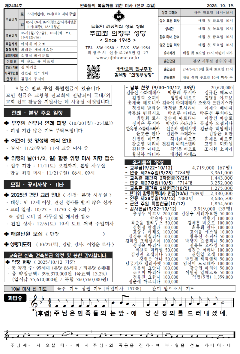 본당 주보 2025년 10월 19일 연중 제29주일, 전교 주일 작성자 ujbhome 작성일 2025-10-15 14:56 조회 234 2025년 10월 19일 연중 제29주일, 전교 주일 단체/개별 연락처는 온라인에서는 제공하지 않습니다. 실물 주보 참고하시기 바랍니다. 좋아요 0 싫어요 0 인쇄 « 2025년 10월 12일 연중 제28주일, 군인 주일 2025년 10월 26일 연중 제30주일 » 목록보기 답글쓰기 Powered by KBoard